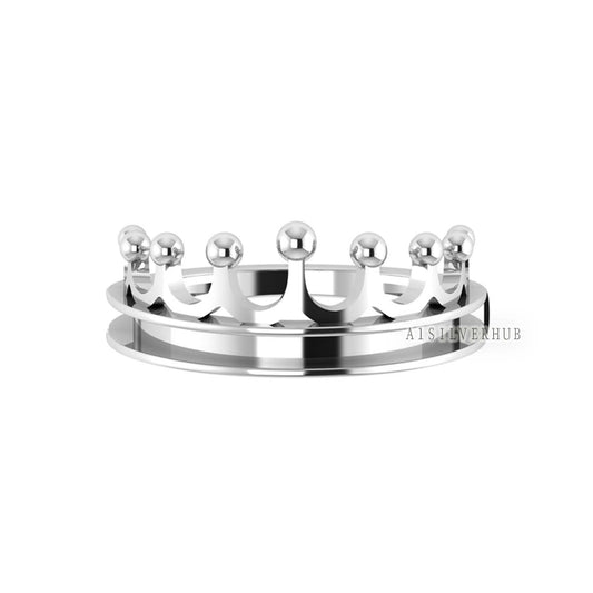 Princess Crown Blank Channel Ring Setting, 925 Sterling Silver, Good for Pour Crushed Opal,Resin & Ashes Work, Breastmilk/Keepsake DIY Craft
