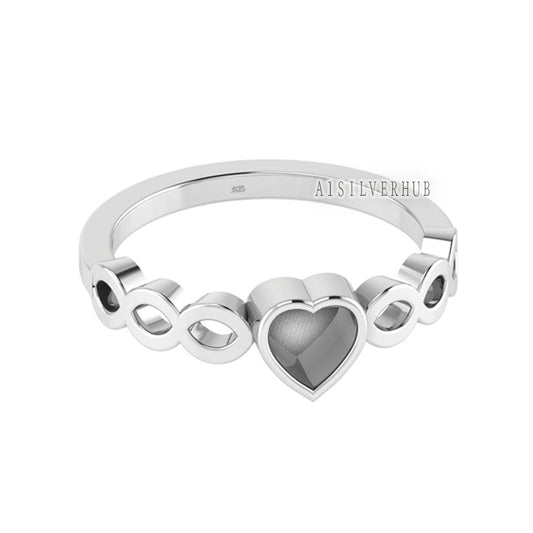 925 Sterling Solid Silver 5x5mm Heart Blank Bezel Infinity Band Ring, Good for Resin & Ashes Work, Breastmilk DIY, Keepsake Jewelry Crafts