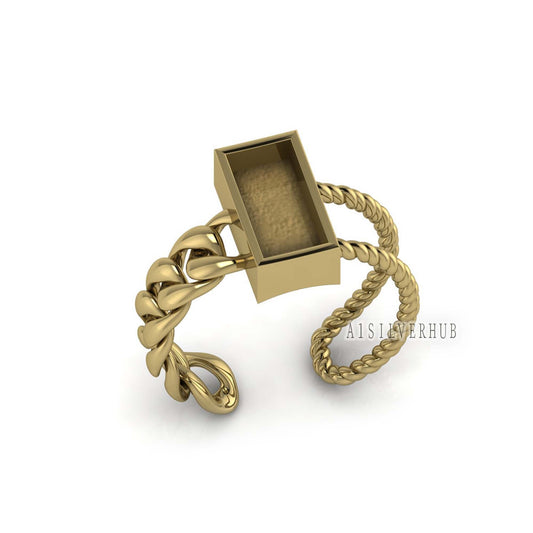 925 Sterling Solid Silver 5x10mm Rectangle Shape Adjustable Band Ring, Good for Crushed Opal, Inlay, Resin, Ashes Work, Keepsake DIY Jewelry