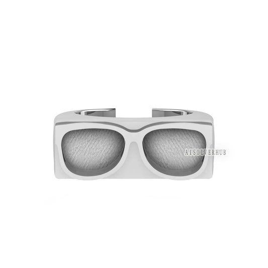 925 Sterling Solid Silver, Eye Glasses Shape Blank Bezel Adjustable Band Ring, Good for Resin & Ashes Work, Men's Ring, DIY Crafts, Gifts