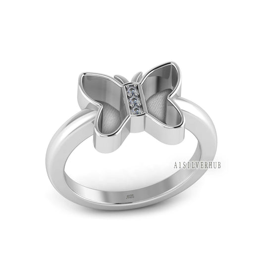 Butterfly Blank Bezel Zircon Setted, 925 Sterling Silver Ring, Bird Lover Ring, Good for Resin & Ashes Work, Keepsake/Breastmilk DIY, Gifts