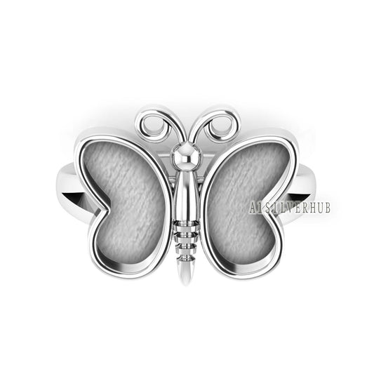 Butterfly Blank Bezel 925 Sterling Silver Ring, Insect Lover's Ring, Good for Resin & Ashes Work, Keepsake/Breastmilk DIY, Memorial Craft