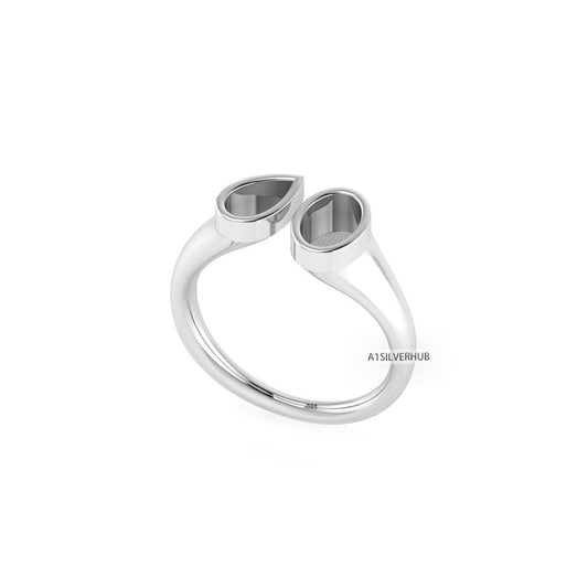 925 Sterling Solid Silver 6x3mm Pear 6x4.5mm Oval Blank Bezel Adjustable Ring, Good for Resin & Ashes Work, Breastmilk/Keepsake DIY Crafts