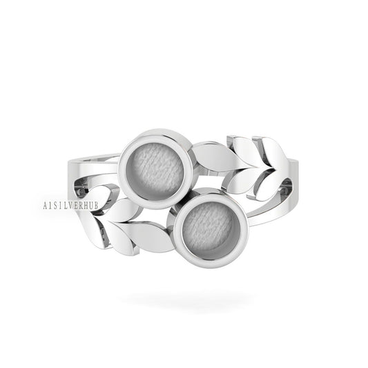 925 Sterling Solid Silver 5mm Round Blank Bezel with Leaf Band Ring Setting, Good for Resin & Ashes Work, Keepsake DIY, Memorial Jewelry