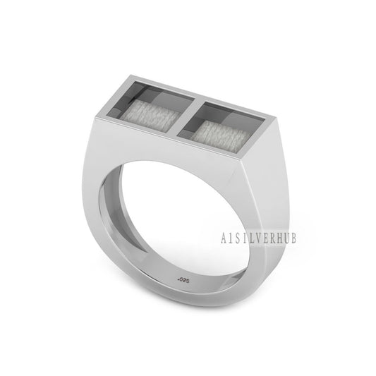 925 Sterling Solid Silver 7mm Two Square Shape Men's Ring Setting, Good for Crushed Opal, Inlay Resin Ashes & Fordite Work, Keepsake Jewelry
