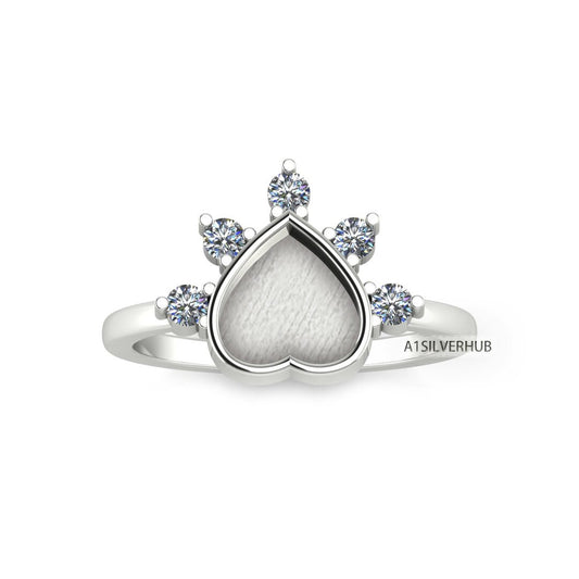925 Sterling Solid Silver 8mm Heart Shape Blank Bezel with CZ Setted Ring, Good for Resin & Ashes Work, Keepsake Breastmilk Jewelry DIY