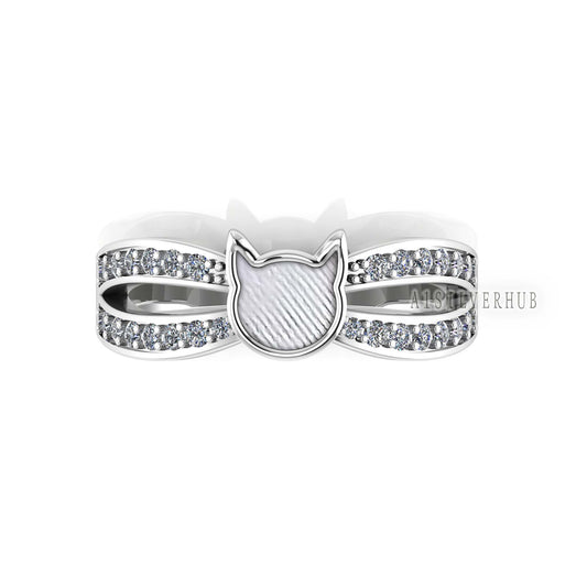 Cat Face 6mm Ring with Zircon On Shank, 925 Sterling Silver Ring, Cat Lover Ring, Animal Ring,Good for Resin & Ashes Keepsake Breastmilk DIY