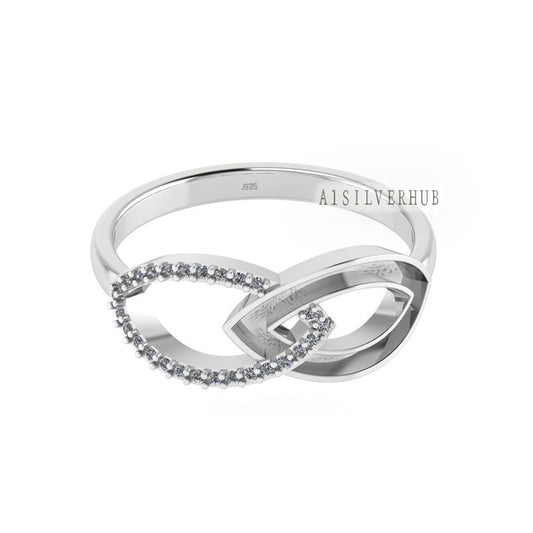 925 Sterling Solid Silver Infinity Blank Channel Ring with Zircon Setted, Good for Inlay Resin & Ashes Work, Keepsake Breastmilk DIY Crafts