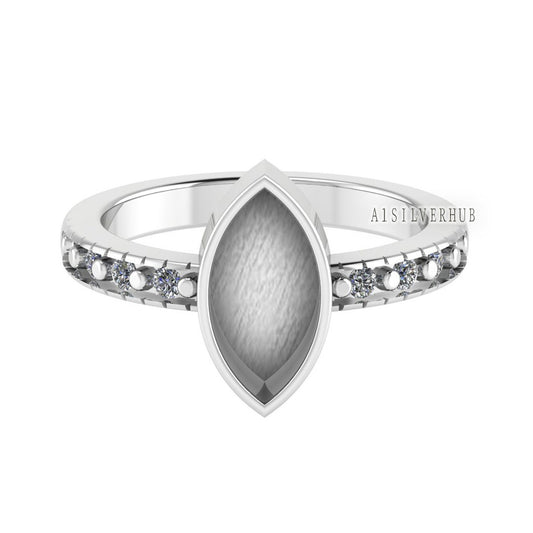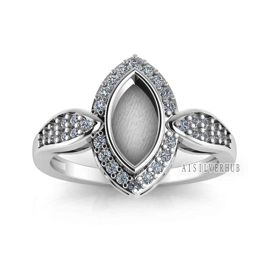 925 Sterling Solid Silver 10x5mm Marquise Blank Bezel with Zircon Setted Ring, Good for Stone, Resin & Ashes, Keepsake/Breastmilk DIY Crafts