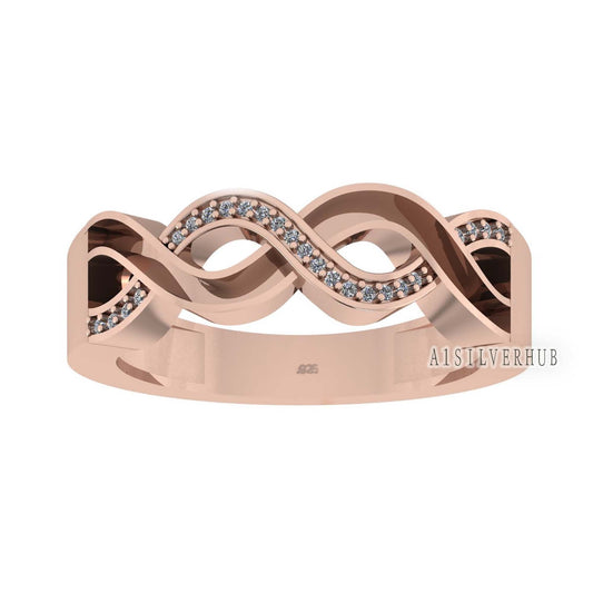 925 Sterling Silver Infinity Band Ring with Blank Channel and Zircon Setted, Good for Inlay Resin & Ashes Work,Keepsake/Breastmilk DIY Craft