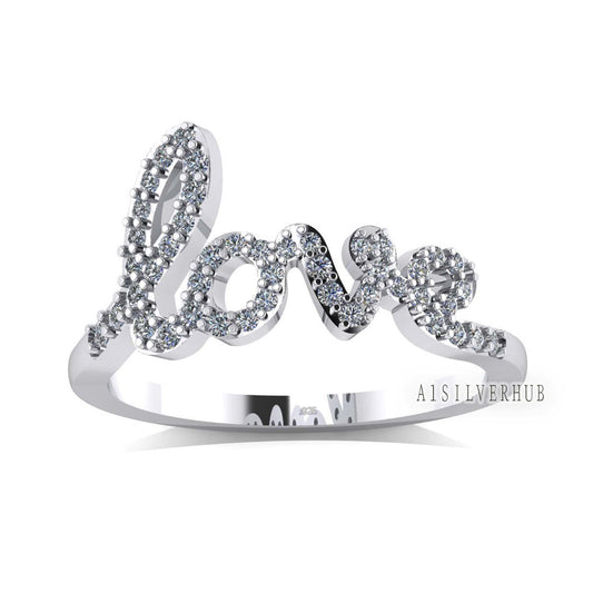 925 Sterling Silver, Filigree Swirl Petite Dainty, Love Script Ring, Cursive Love Band, Handwritten Love, Anniversary Engagement Letter Ring