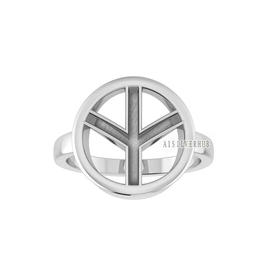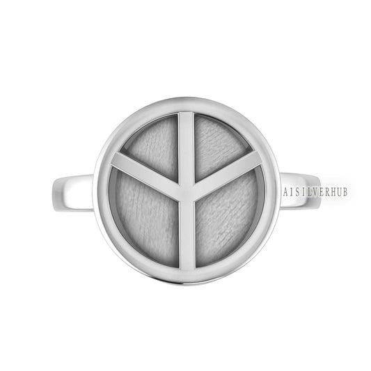 925 Sterling Silver Peace Symbol Blank Bezel Round Ring, Good for Resin & Ashes Work, Keepsake Crafts Memorial, Breastmilk DIY, Signet Rings
