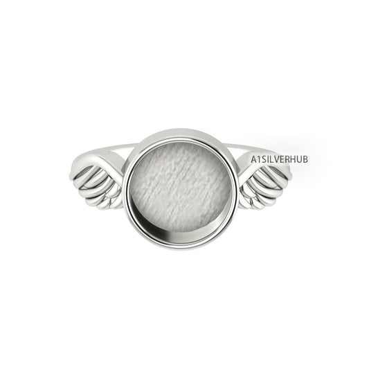 925 Sterling Solid Silver 10mm Round Blank Bezel with Angel Wings Ring Setting, Good for Resin & Ashes Work, Breastmilk Keepsake DIY Crafts