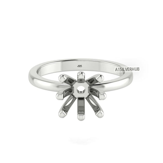 925 Sterling Solid Silver Oval Shape 5x7-10x8mm Pre Notched Blank V Prong Ring, Good for Zircon & Stone Setting Work, Engagement Ring DIY