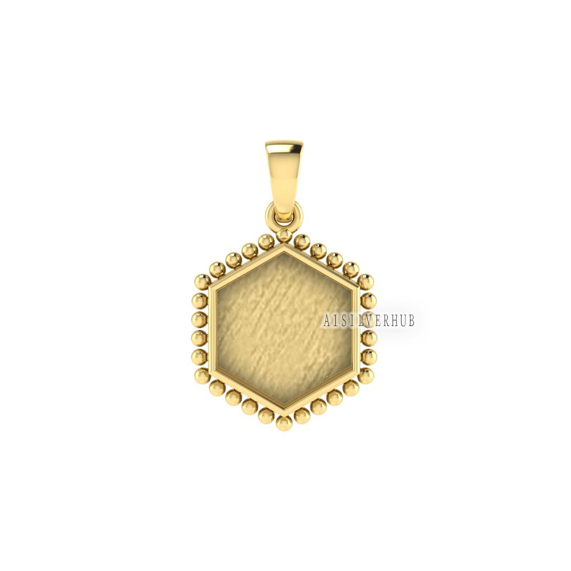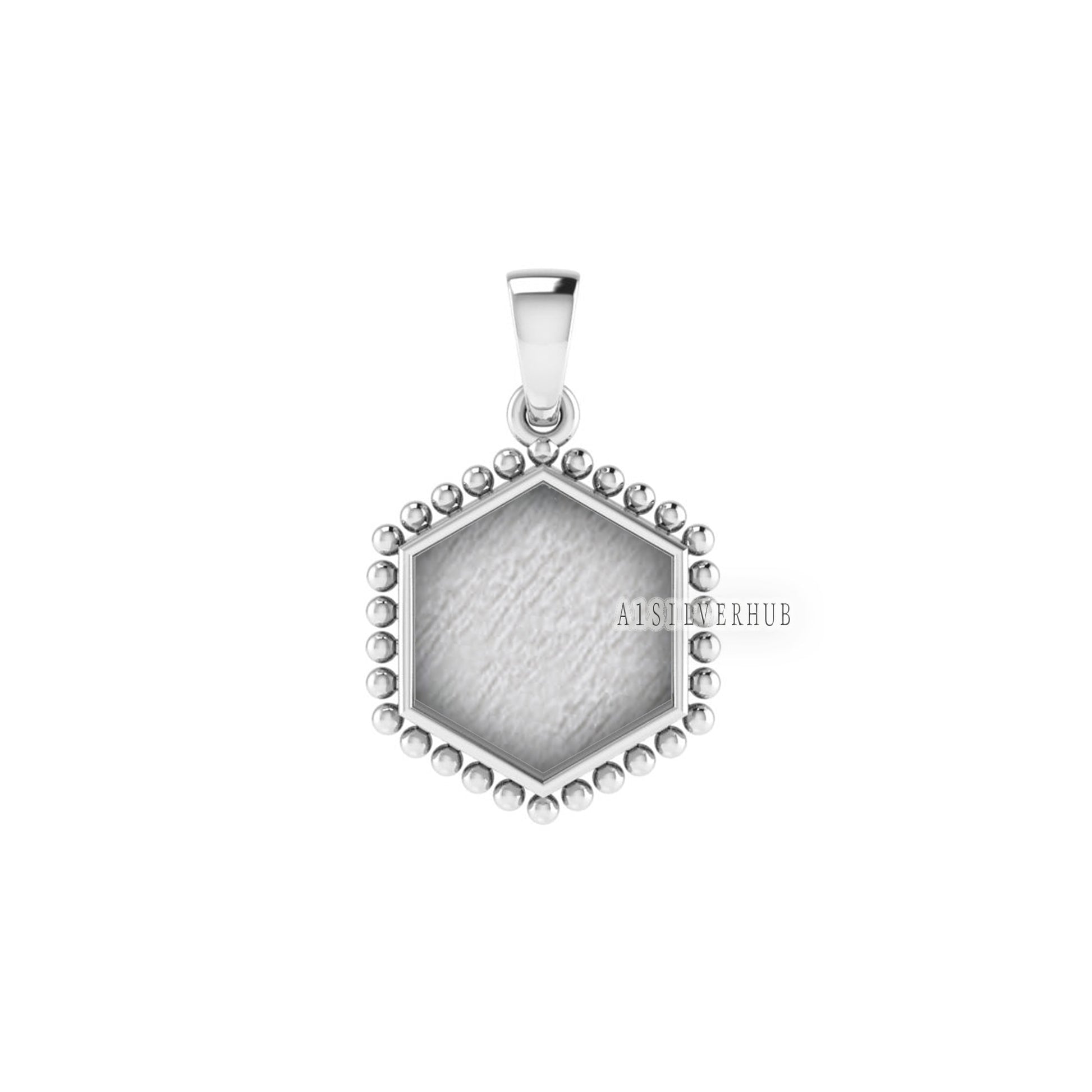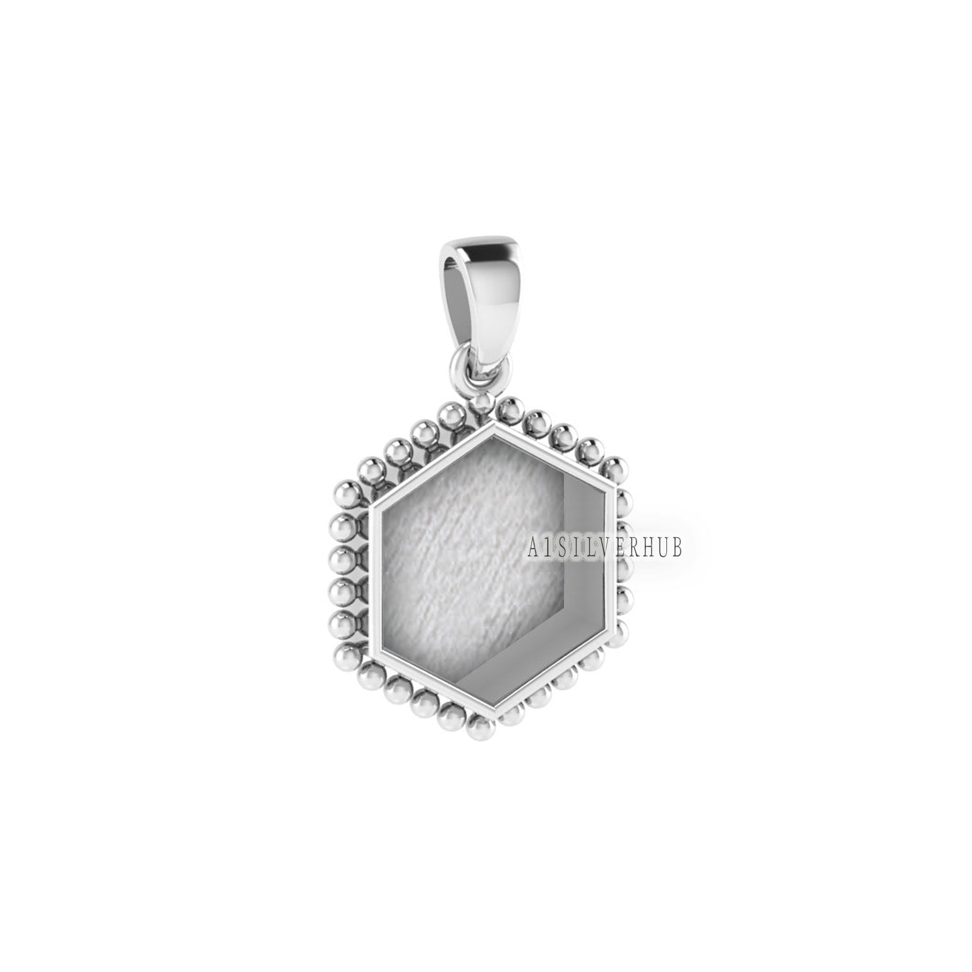 925 Sterling Silver, 12mm Hexagon Blank Bezel Designer Pendant Setting For Pour Resin & Ashes Work, Breastmilk/Keepsake DIY, Memorial Crafts