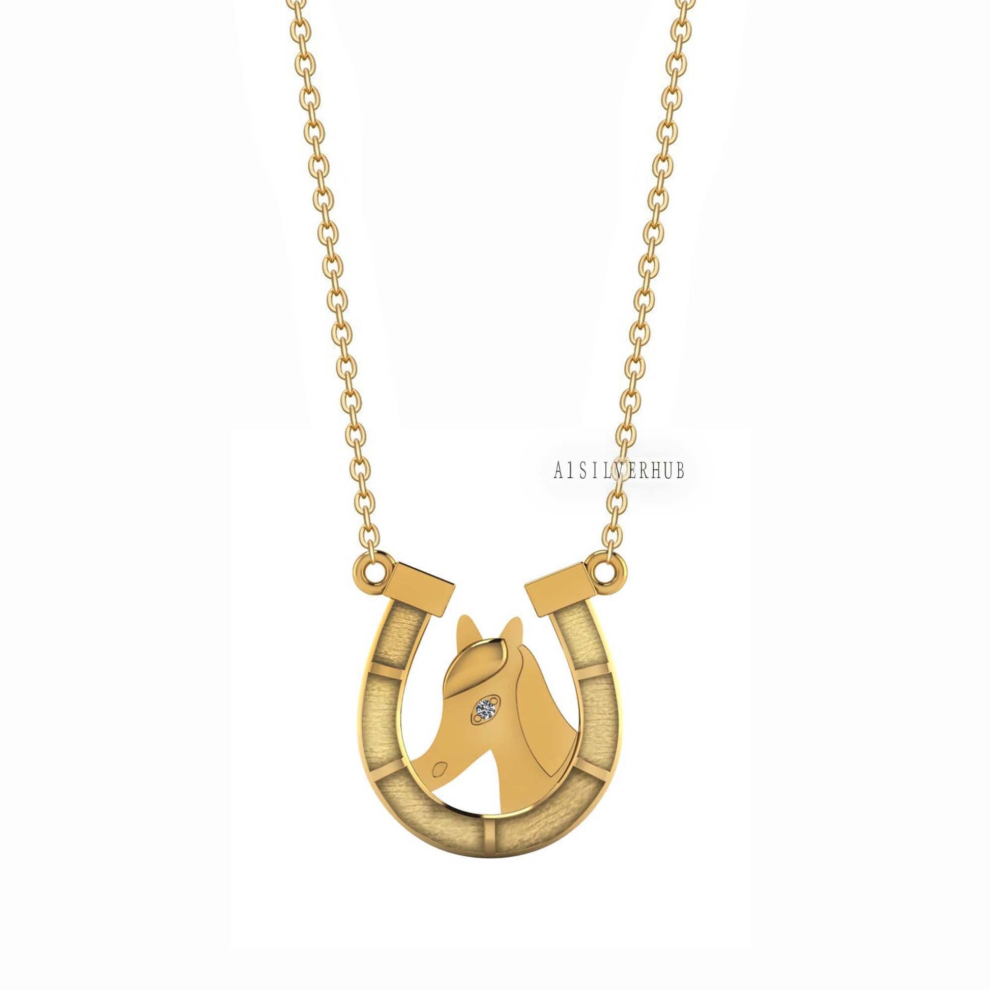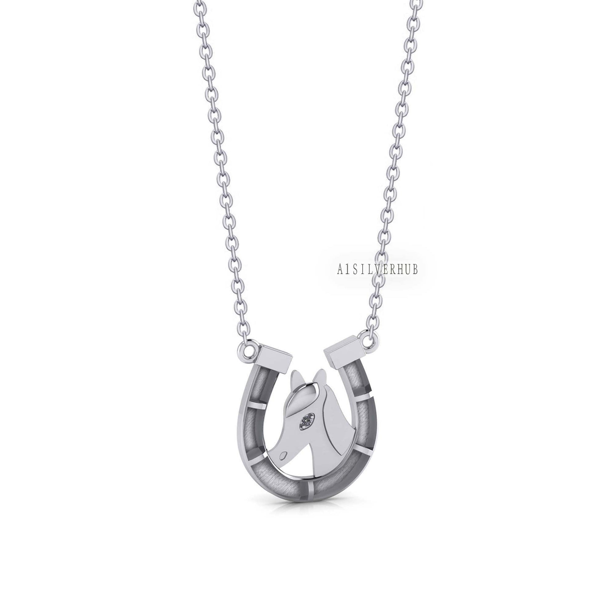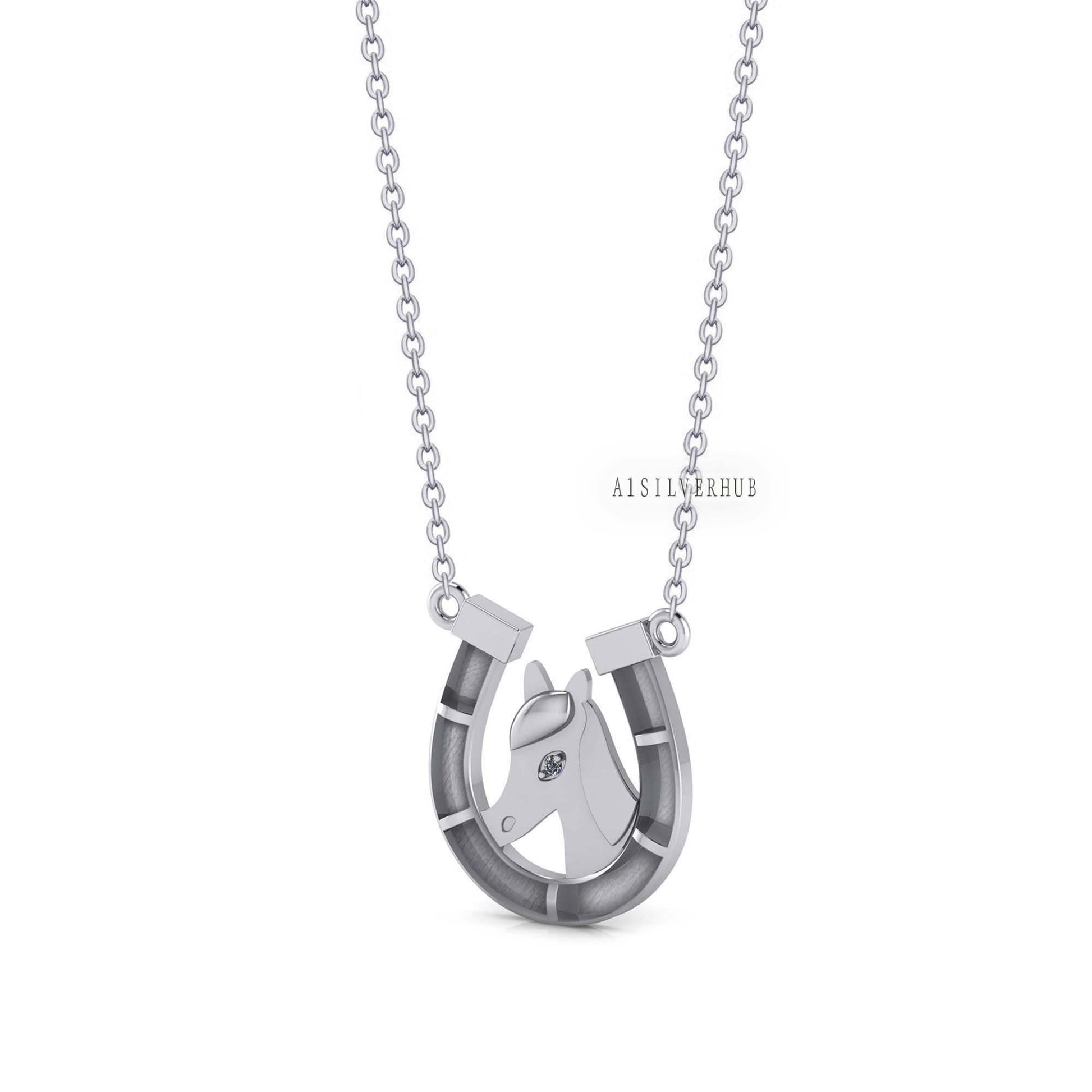 925 Sterling Silver Horse Face with Horseshoe Blank Bezel Necklace, Good for Resin & Ashes Work, Keepsake/Breastmilk DIY, 16''+2'' Chain