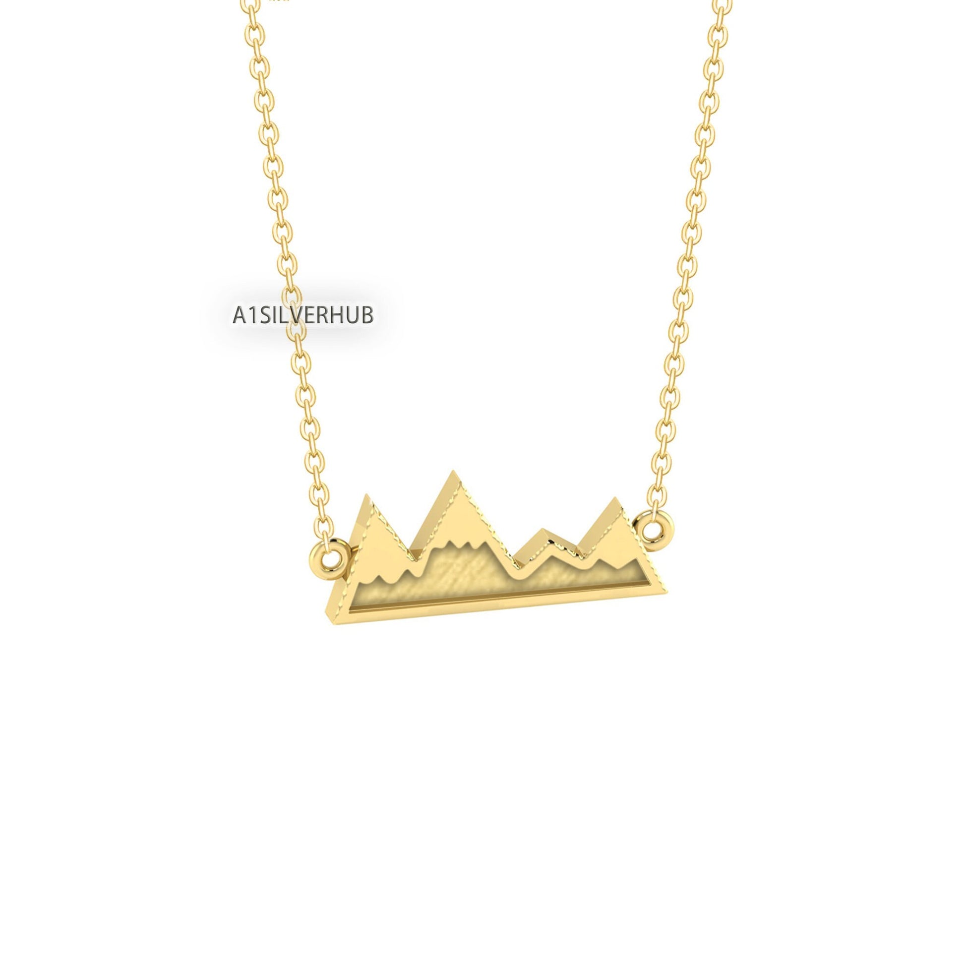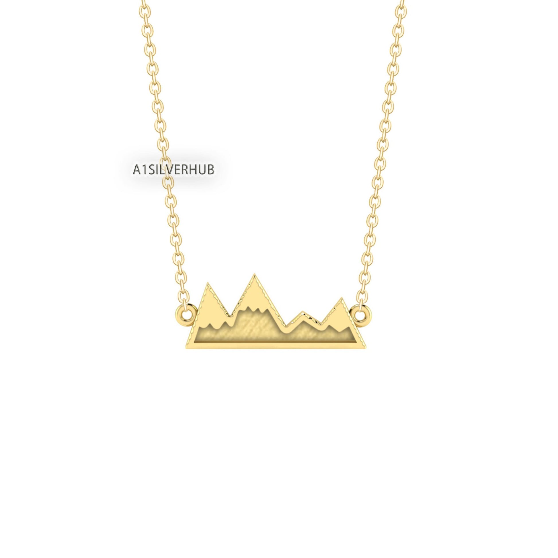 925 Sterling Silver Mountain Valley Blank Bezel Necklace, Good for Resin & Crushed Opal, Mountain Range Keepsake/Breastmilk DIY, 16''+2''