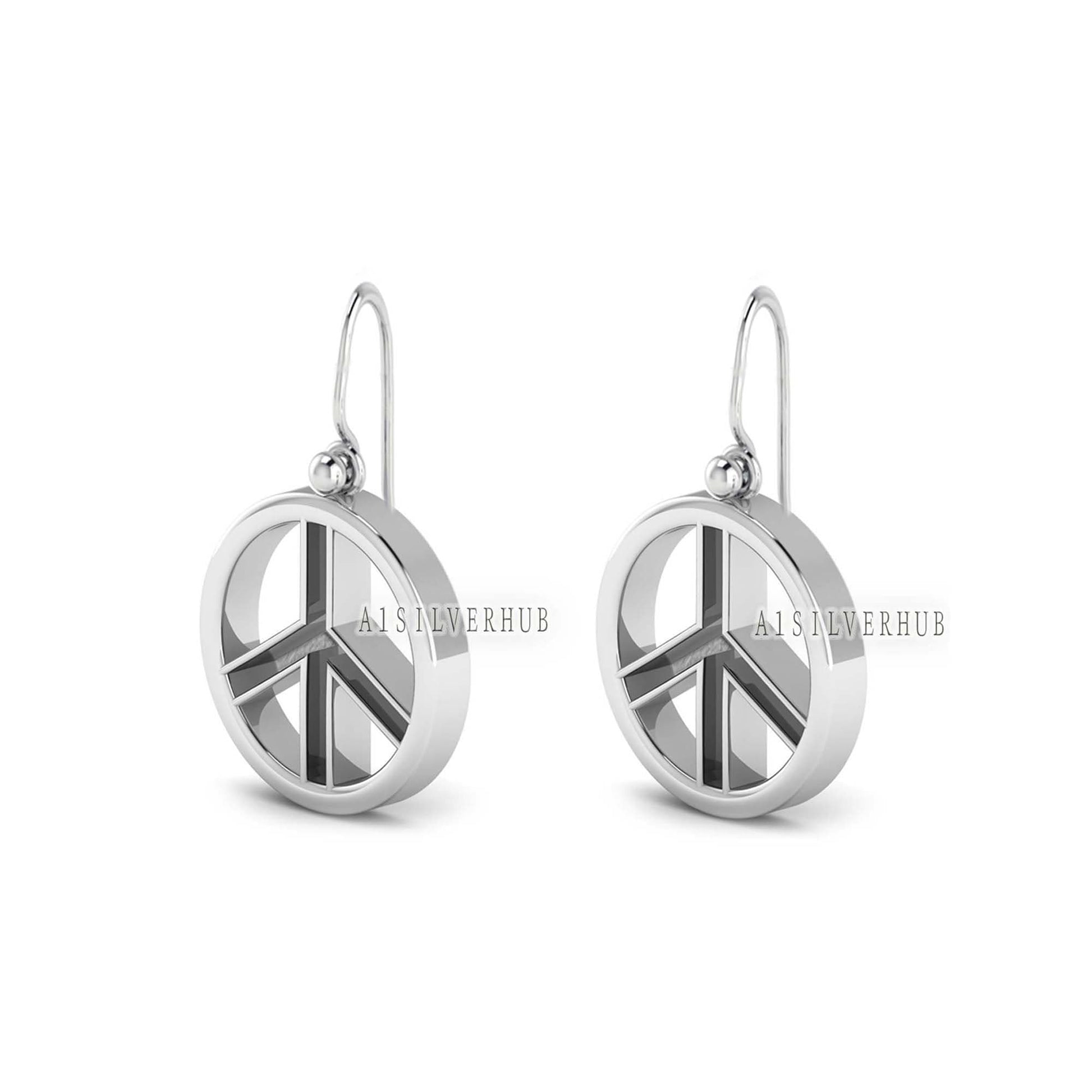 925 Sterling Silver Peace Symbol Blank Bezel Round Dangle Earrings, Good for Resin & Ashes Work, Keepsake Crafts Memorial, Breastmilk, Gifts