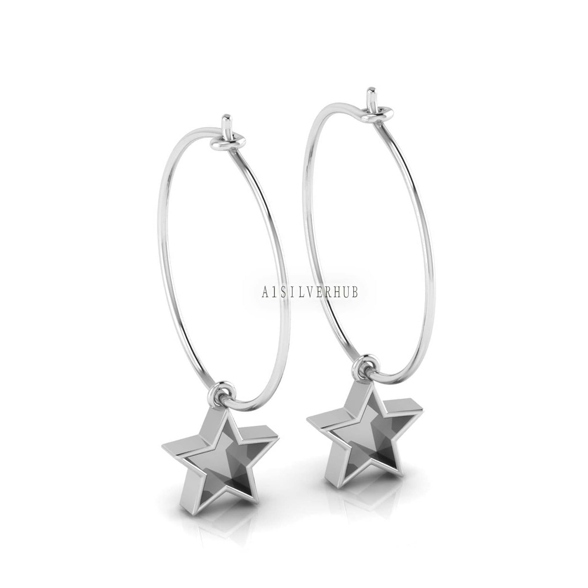 925 Sterling Silver Star Shape 10x10mm Blank Bezel Hoop Earrings, Good for Resin & Ashes Work, Keepsake/Breastmilk DIY, Memorial Crafts Gift