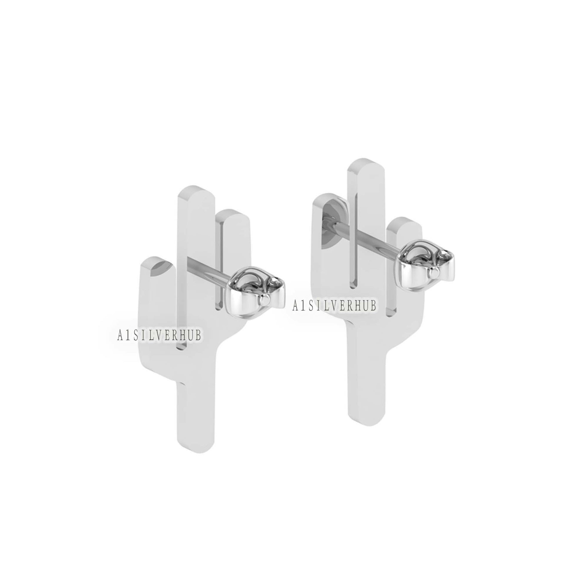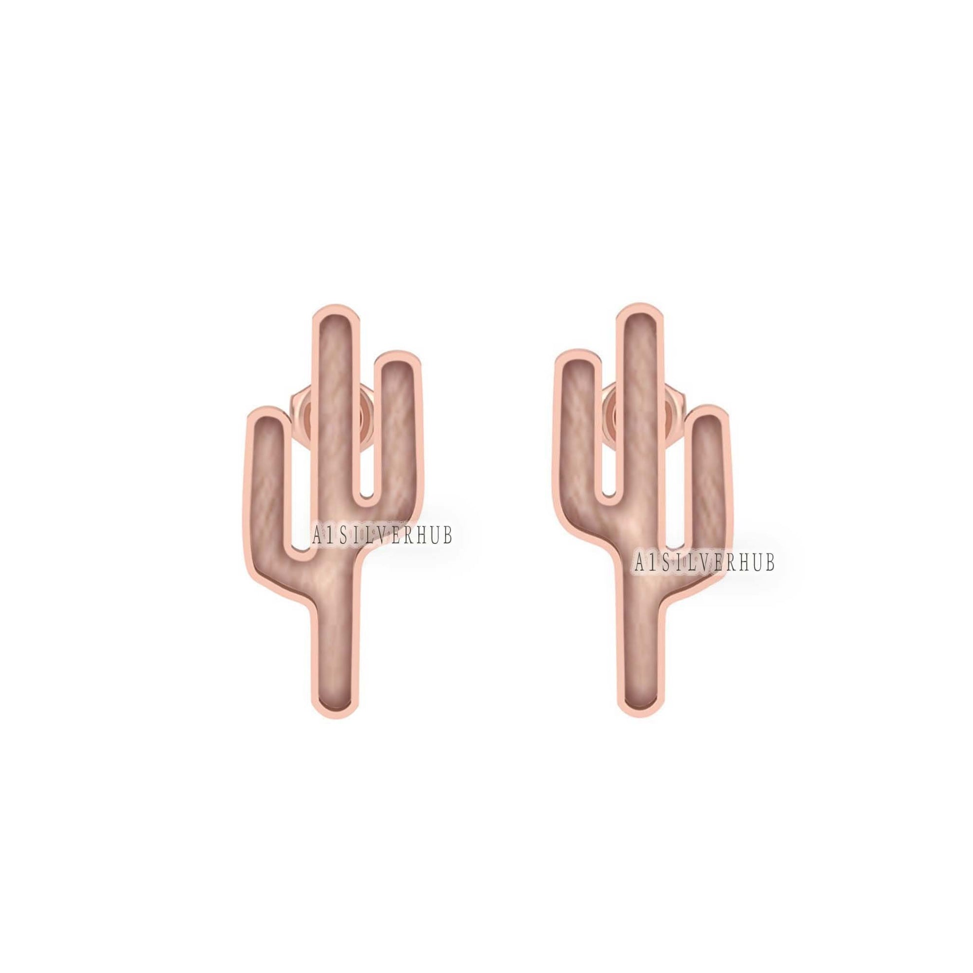925 Sterling Silver Tiny Cactus Nature Inspired Blank Bezel Stud Earrings Settings, Good for Resin & Ashes Work, Keepsake DIY Jewelry Crafts