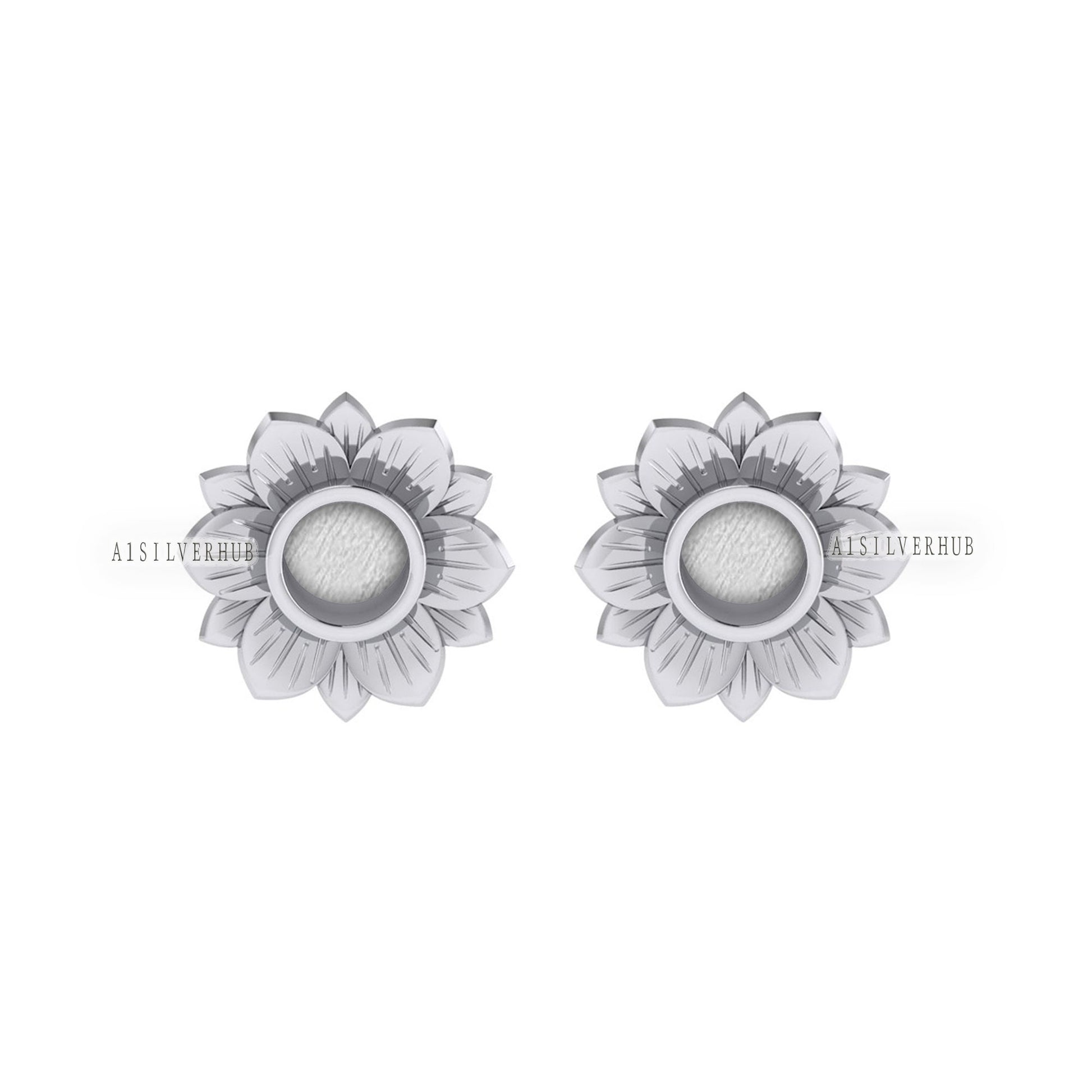 925 Sterling Solid Silver Sunflower 6mm Blank Bezel Stud Earrings Setting, Good for Resin & Ashes Work, Breastmilk/ Keepsake DIY Crafts