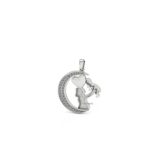 925 Sterling Silver Mother Baby Blank with CZ Setted Crescent Heart, Good for Resin & Ashes, Breastmilk/Keepsake Pendant Setting, DIY Crafts