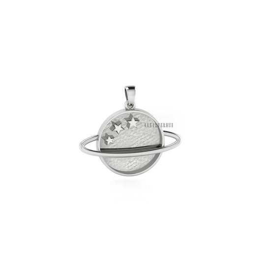 925 Sterling Silver Pendant, Saturn with Stars 20mm Round Blank Bezel Pendant Setting, Good for Resin & Ashes Work, Keepsake/Breastmilk DIY