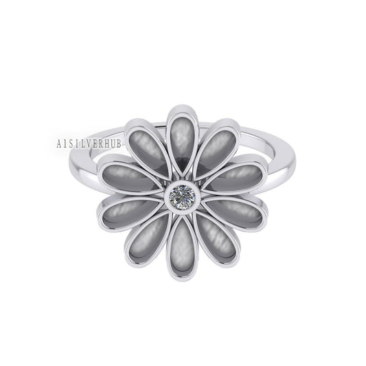 925 Sterling Silver Sunflower Floral Pear Blank Bezel Daisy CZ Setting Ring, Good for Resin & Ashes Work, Keepsake/Breastmilk DIY Crafts
