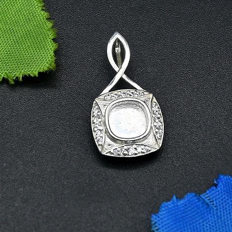 925 Sterling Silver Pendant, Cushion Shape Blank Bezel Pendant Zircon Setted, Good for Resin & Ashes Work, Keepsake Jewelry DIY Crafts