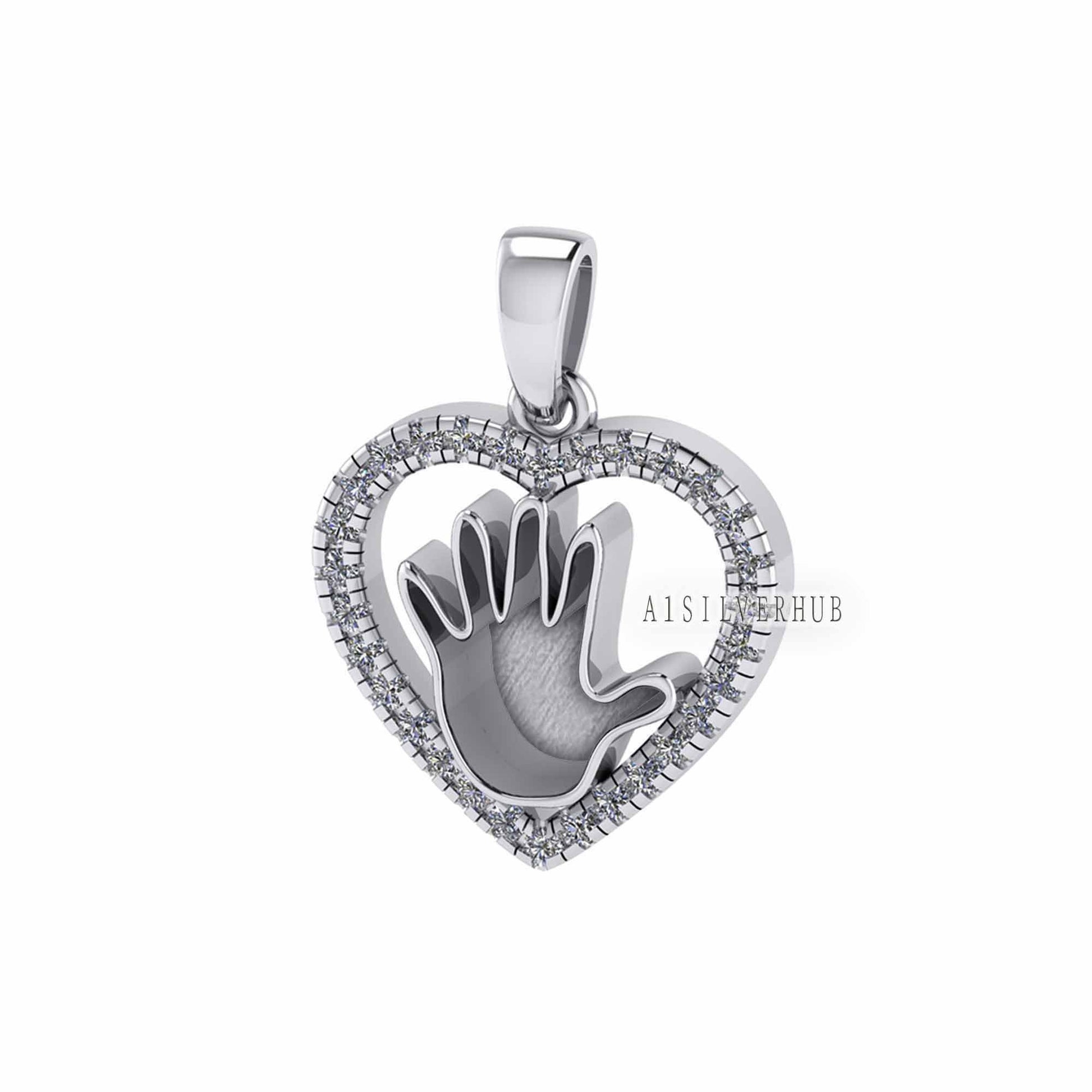 Heart with Zircon Setted Baby Palm Blank Bezel Pendant Settings, 925 Sterling Silver, Good for Resin Work, Breastmilk/Keepsake DIY, Locket