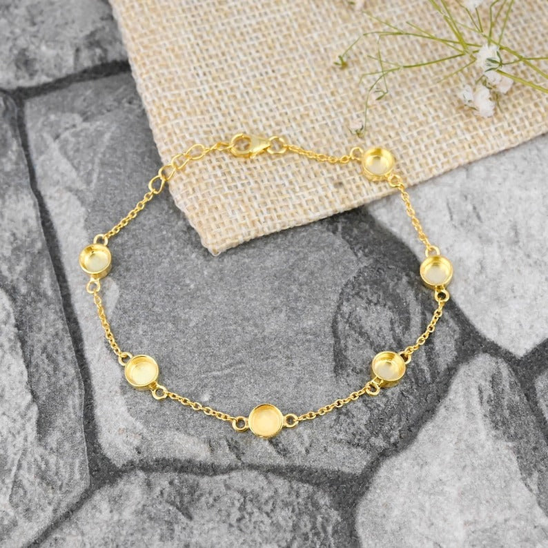925 Sterling Silver 5mm Round 6 Blank Bezel Cable Chain Bracelet Setting with Lobster Clasp, Good for Resin & Ashes, Keepsake/Breastmilk DIY