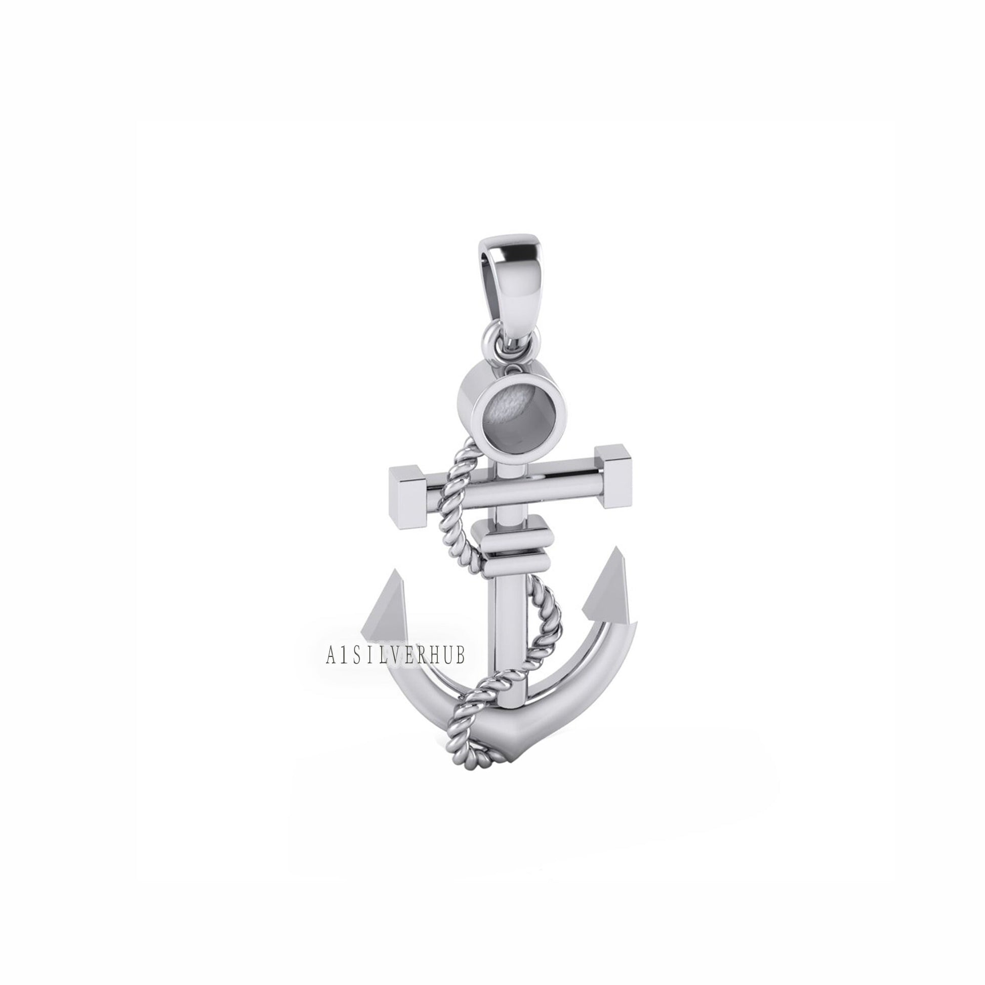 925 Sterling Solid Silver Anchor Hook 4mm Round Blank Bezel Pendant, Good for Resin & Ashes Work, Keepsake/Breastmilk DIY, Memorial Crafts