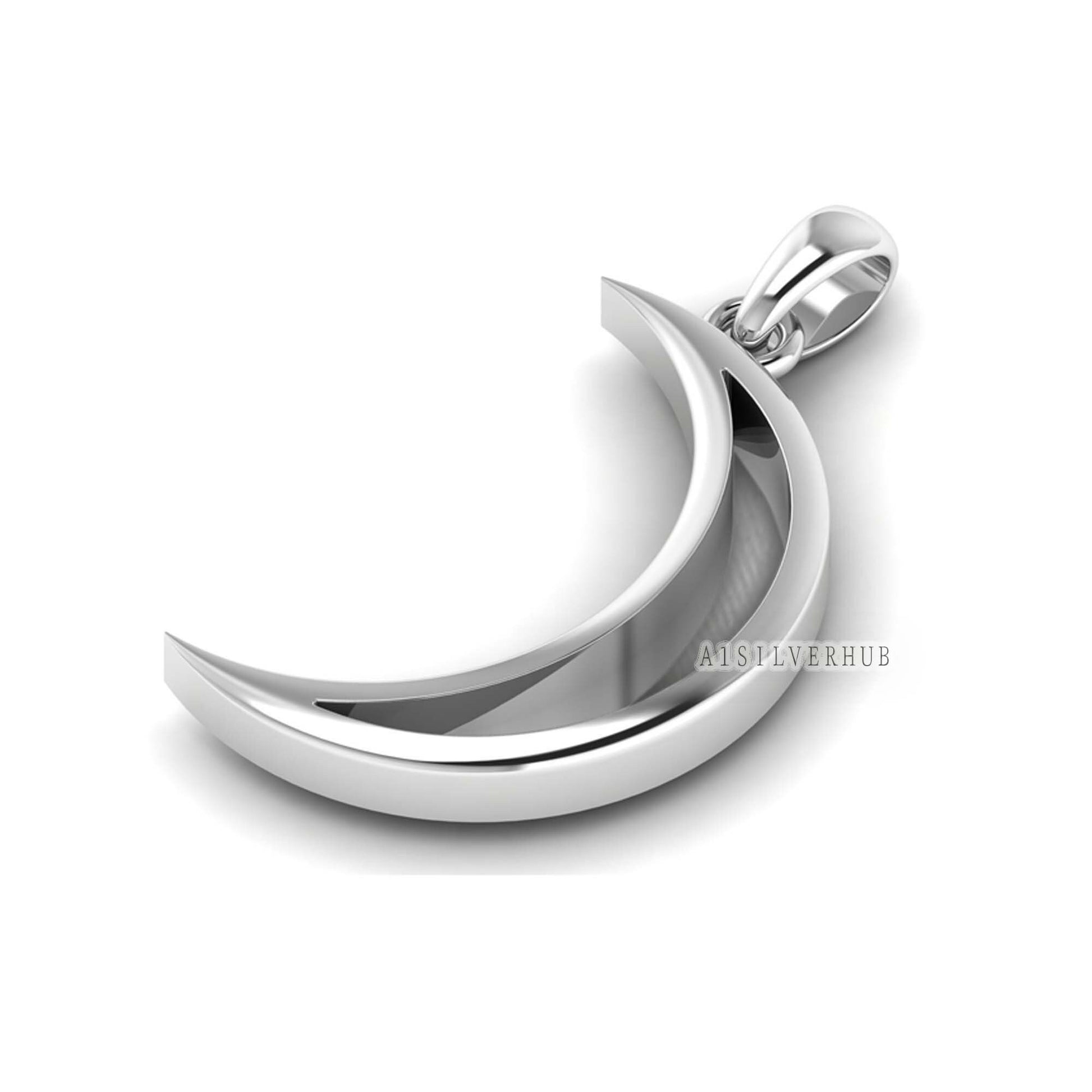 925 Sterling Solid Silver Crescent Moon Shape Breastmilk/Keepsake Pendant Setting, Good for Resin & Ashes Work, Memorial Locket, DIY Charms