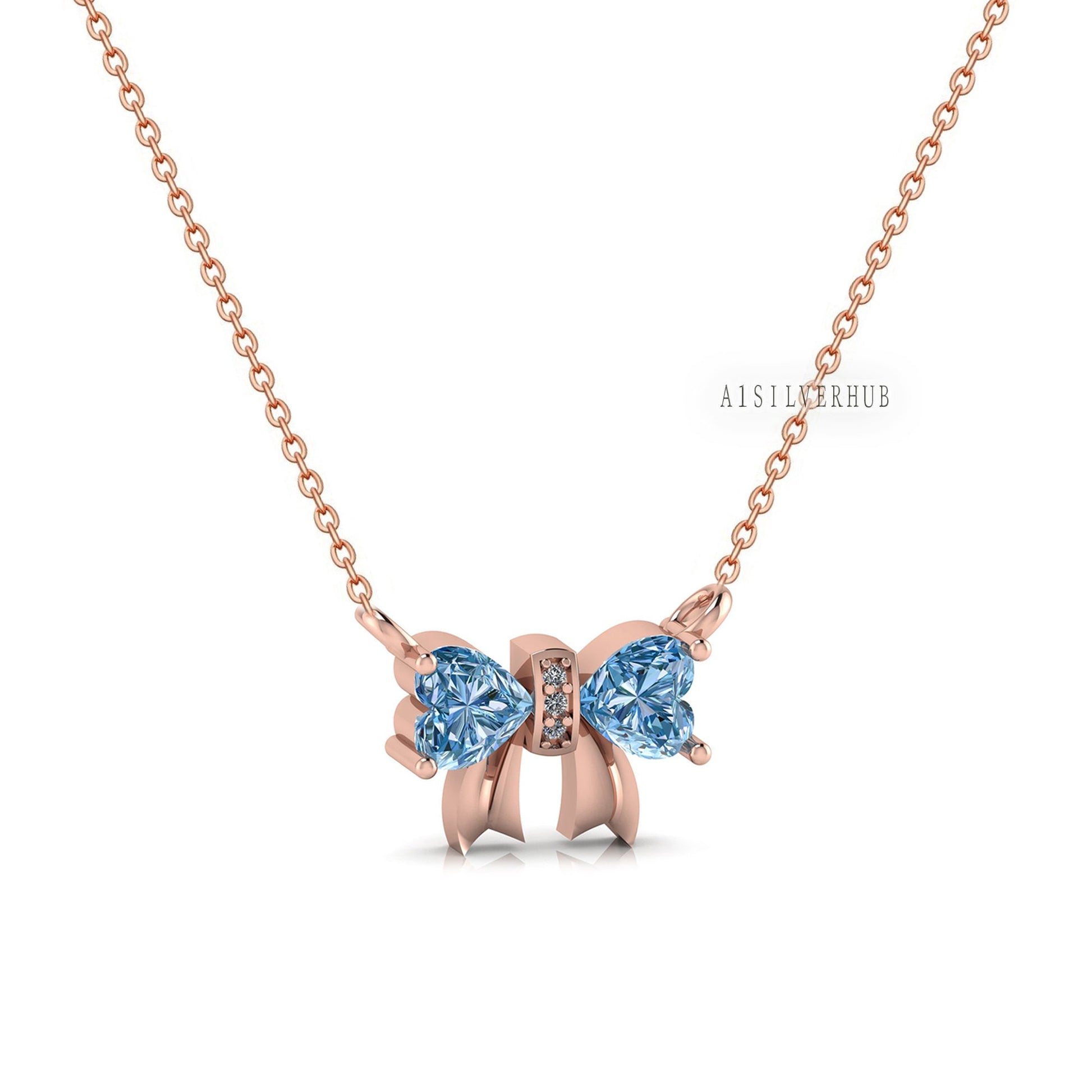 Elegant Ribbon Necklace with Blue Topaz Stone, Bow Tie the Knot, 925 Sterling Silver with CZ Setted, Party Wear Jewelry, Gift For Loved Ones