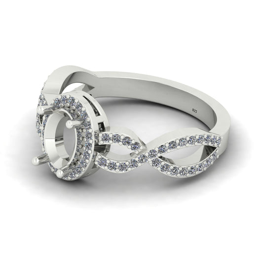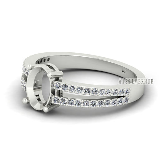 925 Sterling Solid Silver 8x6mm Oval Semi Mounting with CZ Setted Band Ring, Good for Stone & Diamond Set Work,DIY Crafts, Keepsake Jewelry