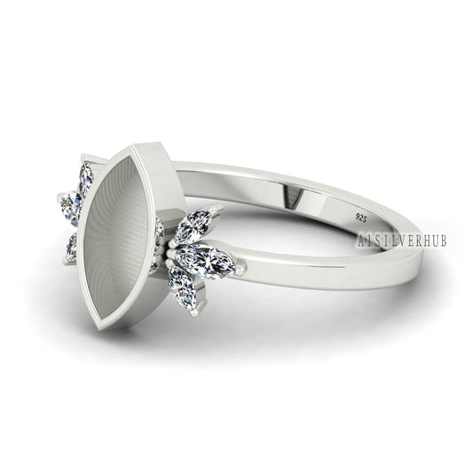 925 Sterling Solid Silver 9x5mm Marquise Shape Blank Bezel with Marquise CZ Ring, Good for Resin & Ashes Breastmilk DIY Work, Keepsake Ring
