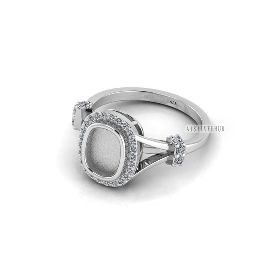 925 Sterling Solid Silver 8x6mm Cushion Blank Bezel with CZ Setted Ring, Good for Resin & Ashes Work Breastmilk DIY Crafts, Keepsake Jewelry