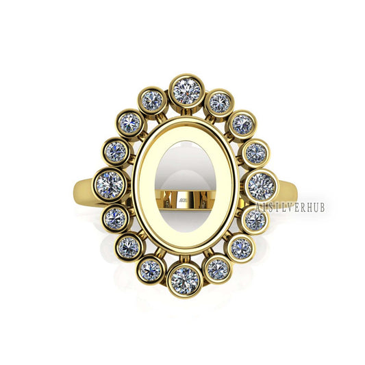 925 Sterling Solid Silver 9x12mm Oval Blank Bezel with CZ Setted Ring Setting, For Gemstone, Jewelry DIY Craft, Stackable Ring, Gift For Her