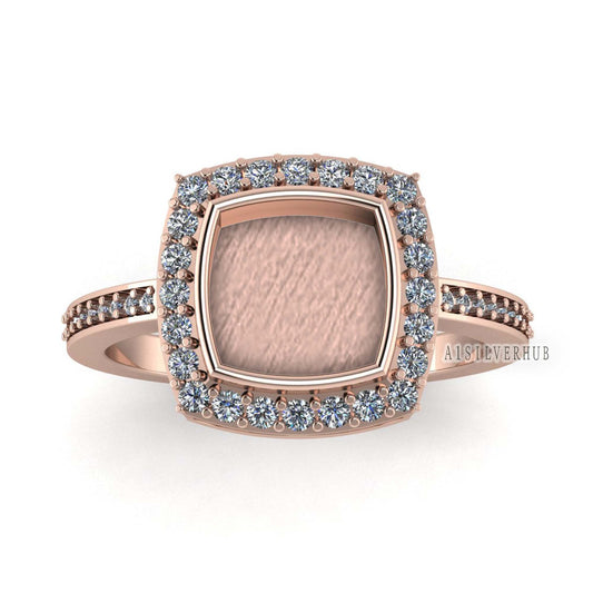 925 Sterling Solid Silver 8x8mm Cushion Blank Bezel with CZ Setted Ring, Good for Resin & Ashes Work Breastmilk DIY Crafts, Keepsake Jewelry