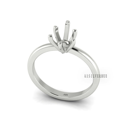925 Sterling Solid Silver Oval 8x6mm Blank Prong CZ Setted Band Ring, Good for Zircon & Stone Setting Work, DIY Wedding Ring, Gifts For Her