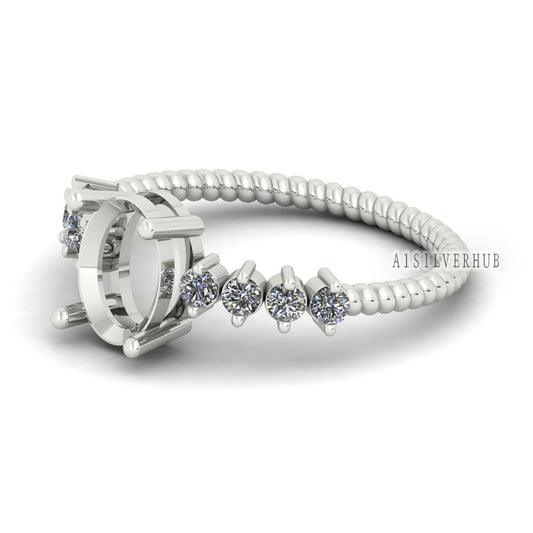 925 Sterling Solid Silver Oval 6x8mm Filigree Pre Notched Blank Prong Ring, Good for Zircon & Stone Setting Work, Wedding Ring, Gift For Her