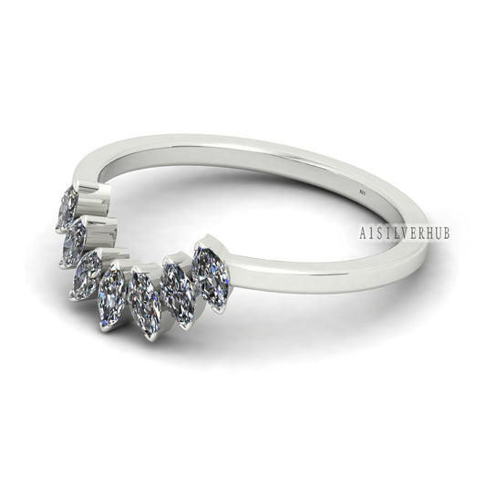 925 Sterling Solid Silver Queen Crown Halo Ring, 2x4 Marquise CZ Setted, Contour Wedding Ring, Half Eternity, Engagement Ring, Gifts For Her
