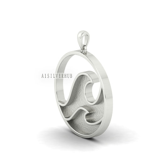 925 Sterling Solid Silver Ocean Wave Blank Bezel Circle Pendant, Good for Resin & Ashes Work,Keepsake/Breastmilk DIY, Memorial Jewelry Craft