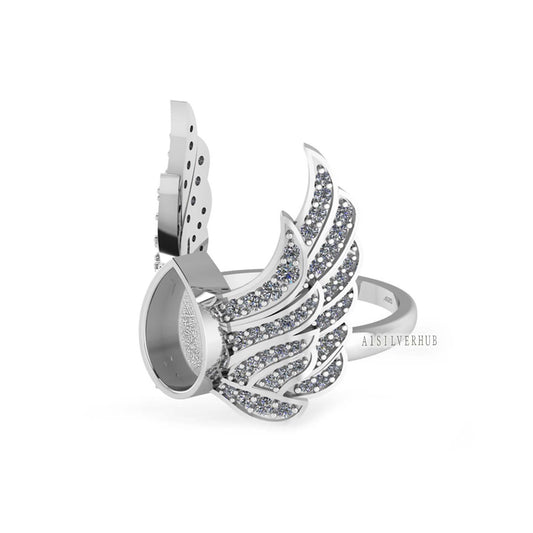 925 Sterling Solid Silver Pear Shape 7x10mm Blank Bezel with Angel Wings Zircon Setted Ring, Good for Stone, Resin & Ashes Work, Breastmilk