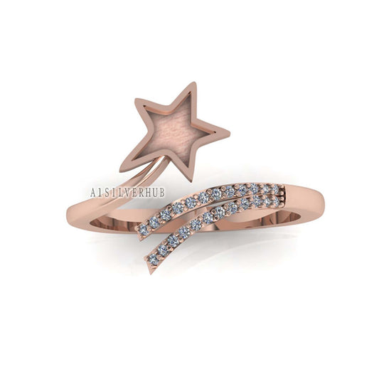 925 Sterling Solid Silver Star 5mm Blank Bezel with CZ Setted Adjustable Ring, Good for Pour Resin & Ashes Work, Keepsake/Breastmilk Crafts