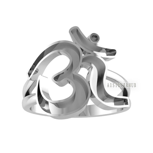 925 Sterling Solid Silver Symbol of Hinduism OM Ring, Blank Wide Channel Ring, Good for Crushed Opal, Inlay, Resin & Ashes Work, Jewelry DIY