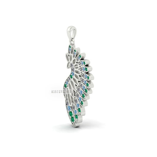 Accent Peacock with Multi Colored Cubic Zircon Setted, 925 Sterling Silver Pendant, Pave CZ, Animal Designer, Everyday Jewelry, Gift For Her