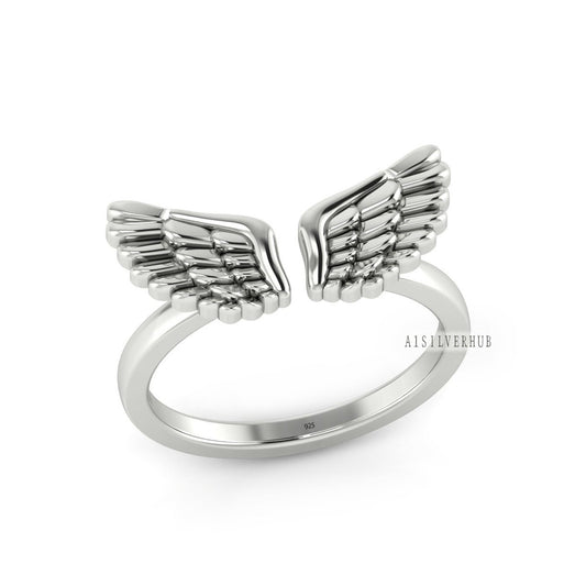 Silver Adjustable Ring, Angel Wing Ring, Gold Adjustable Angel Wing Ring, Guardian Protection Ring, Angel Wing Statement Ring, Feather Ring