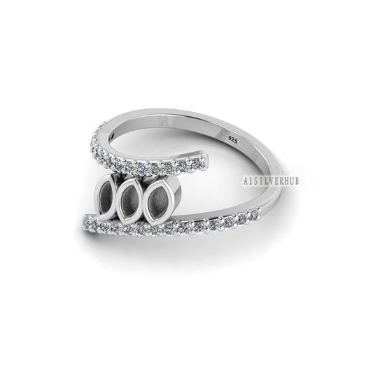 S925 Sterling Silver Three Marquise Blank Bezel Ring 2x4mm with CZ Setted Ring Settings for Resin, Ashes Breastmilk Keepsake DIY Crafts