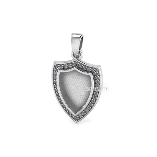 Shield Shape 12x9mm Blank Bezel with CZ Setted, 925 Sterling Silver Pendant, Good for Resin & Ashes Work, Keepsake/Breastmilk DIY Crafts